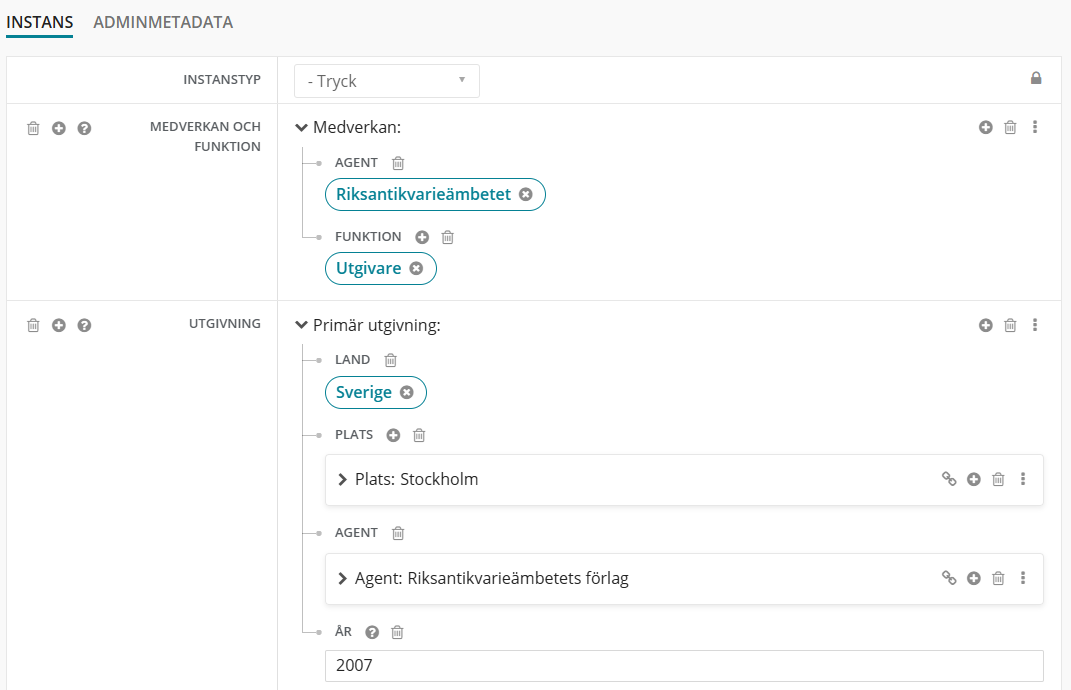 Agenter som är knutna till manifestation i RDA knyts till instans i Libris.