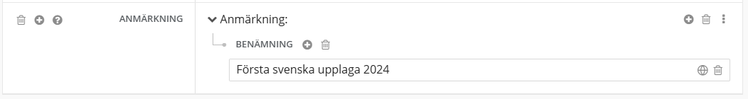 Klicka på plustecknet/Lägg till anmärkning framför Anmärkning för att lägga till fler anmärkningar.